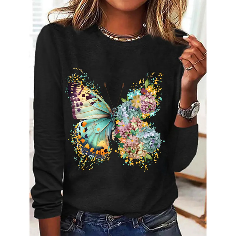 Women's T Shirt Graphic Animal Butterfly Vintage Fashion Stylish Short Sleeve Long Sleeve Crew Neck Round Neck Regular Tops Daily Weekend Print Black White Pink Green Khaki Summer Spring Fall