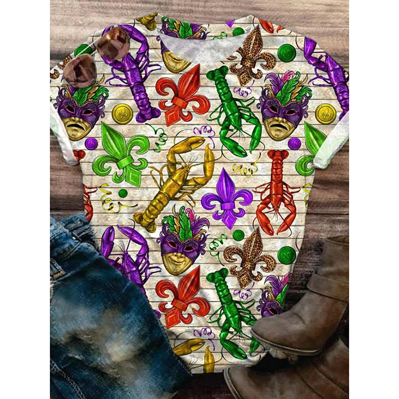 Women's Shirt Color Gradient Daily Casual 3/4 Length Sleeve Crew Neck Regular Tops Daily Holiday Print Purple Gold Summer Spring Fall