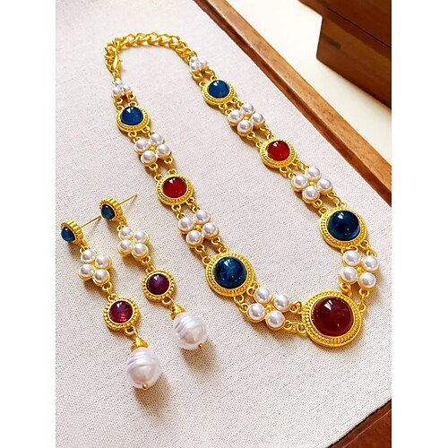 Damen Mardi Gras Royal Renaissance Perlen- und Metall-Choker-Nekset - Rote/Blaue Kristallaccessoires für Karneval und formelle Veranstaltungen