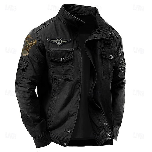 Herren Wolf Rentier Tarnung Hemd Knopfhemd Langarm Ethnisch Vintage-Retro Outdoor Campen und Wandern Jagd Frühling Herbst Umlegekragen 3D-Druck Leinenähnliches Hemd Tarnung Tarngrau