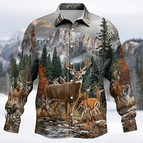 Herren Tarnung Rentier Hemd Knopfhemd Langarm Vintage-Retro Outdoor Campen und Wandern Jagd Frühling Herbst Umlegekragen 3D-Druck Hemden mit Kragen Tarnung Khaki Armeegrün Khaki