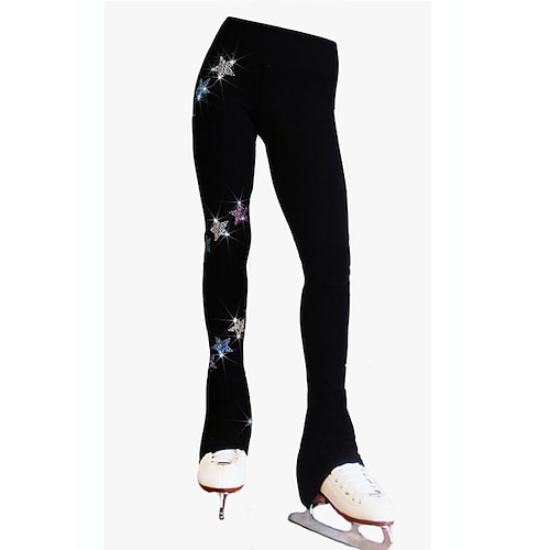 pantaloni da pattinaggio artistico da donna e da ragazza, pantaloni da pattinaggio sul ghiaccio, neri, elastici, abbigliamento da pattinaggio per gare di allenamento, termici, caldi, con