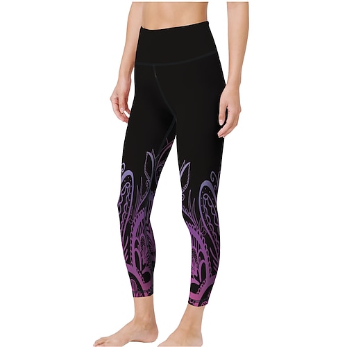 Per donna Sports Gym Leggings Pantaloni da yoga Vita alta Elastene Verde Viola Giallo Leggings corti Floreale Fasciante in vita Sollevamento dei glutei Abbigliamento Abbigliamento Yoga Fitness