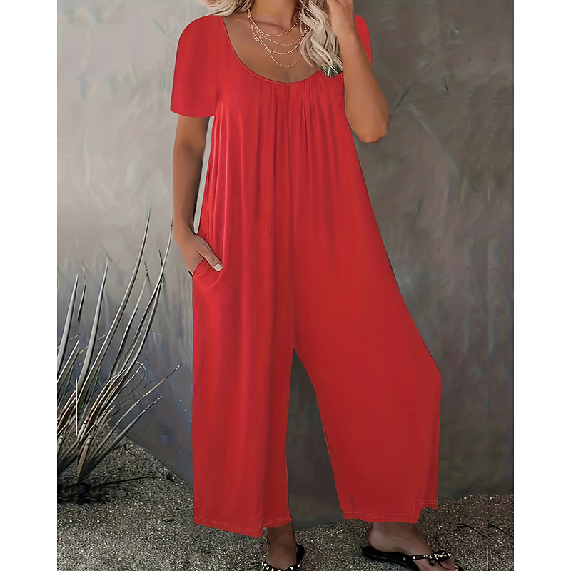 Women's Jumpsuit Active Solid Color Short Sleeve Wide Leg Crew Neck Pocket Daily Vacation Loose Fit Black Wine Red Summer