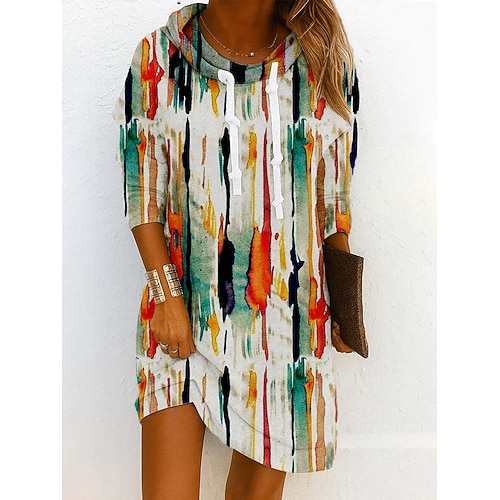 Per donna Mini Abito Tubino Abito a Tubino Festa Casual Boho All'aperto Casa Sport Vestibilità comoda Floreale Grafico Manica Lunga Con Cappuccio Giallo Rosa Viola Verde Primavera Autunno Inverno