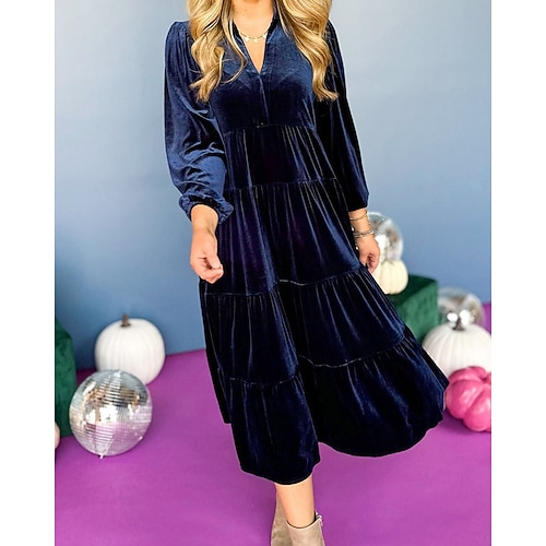 Per donna Abito Midi Abito in Velluto Moda Moderno Quotidiano Ufficio Uscire Vestibilità regolare Semplice Manica Lunga Scollo a V Nero Vino Marrone Verde Primavera Autunno Inverno