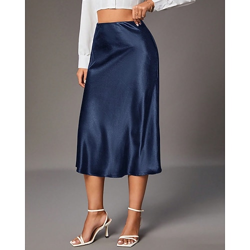 Per donna Aderente Elegante Moda Casual Midi Vita Alta Gonne Semplice Patchwork Micro-elastico Quotidiano Streetwear Vinaccia Aalbicocca Verde militare Rosso Estate Spandex Poliestere
