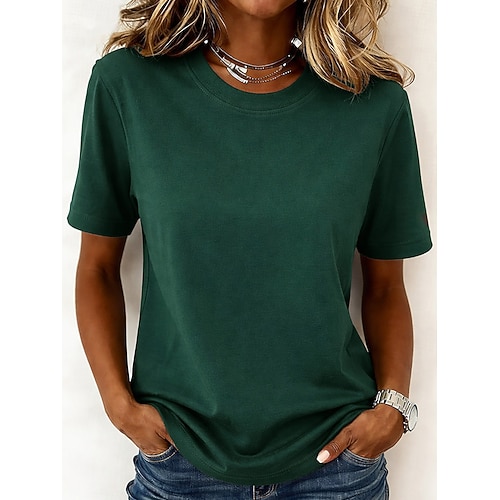 T-Shirt da Donna in 100% Cotone Shirt Tee Top Monocromatica Moda Stilosa Basic Manica Corta Collo Regolare Top Regolari Uscita Giornaliera Weekend Blu Nero Bianco Giallo Verde Chiaro Estate Primavera
