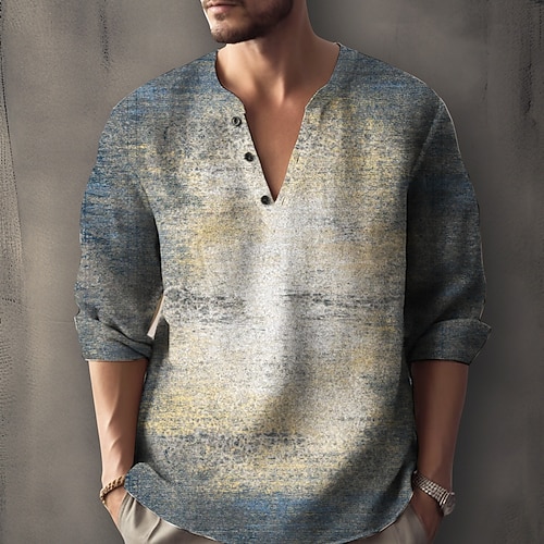 Per uomo Camicia Camicia di lino Camicia popover Camicia casual Camicia di cotone Semplice Vacanza Camicia hawaiana Nero Bianco Marrone Verde Manica Lunga Scollo a V Primavera Autunno Abbigliamento