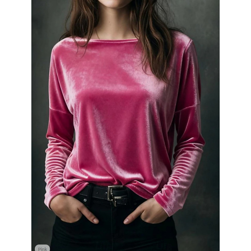 Women's Blouse Solid Color Vintage Casual Long Sleeve Crew Neck Regular Tops Daily Ruched Blue Sage Green Pink Wine Brown Spring Fall Winter