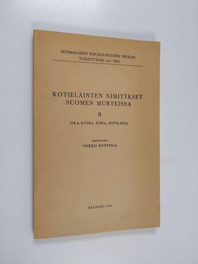 Veikko Ruoppila : Kotieläinten nimitykset Suomen murteissa 2 : Sika, koira, kissa, siipikarja