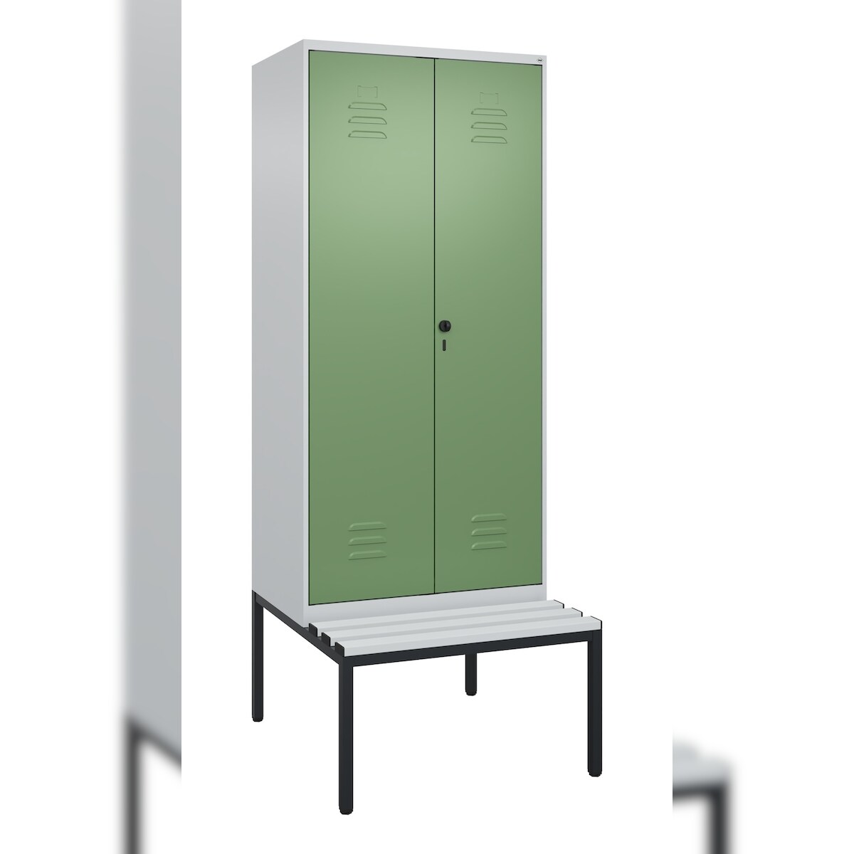 C+P Spind Classic PLUS, Sockel, 3 Abteile, HxBxT 195x75x50cm, Zylinderschloss, Hellgrau/Resedagrün von PROREGAL