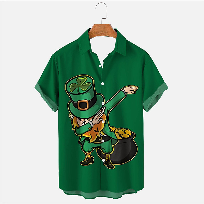 St.Patrick's Day Four Leaf Clover Casual Men's Shirt Daily Wear Going out Weekend Autumn / Fall Turndown Short Sleeves Dark Green, Green S, M, L 4-Way Stretch Fabric Shirt St.
