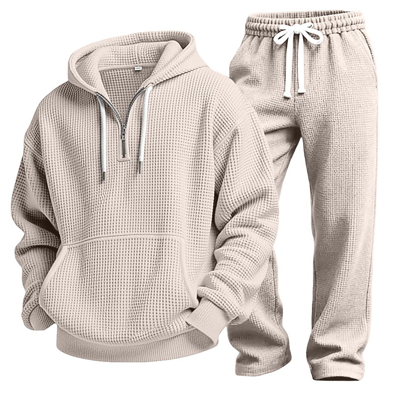 Men's Hoodie Tracksuit Waffle Hoodies Hoodie Pants Set Hoodie Daily Outdoor Vacation Daily Wear Drawstring Half Zip Plain Wine Red Black White Activewear Sports Fashion Fall
