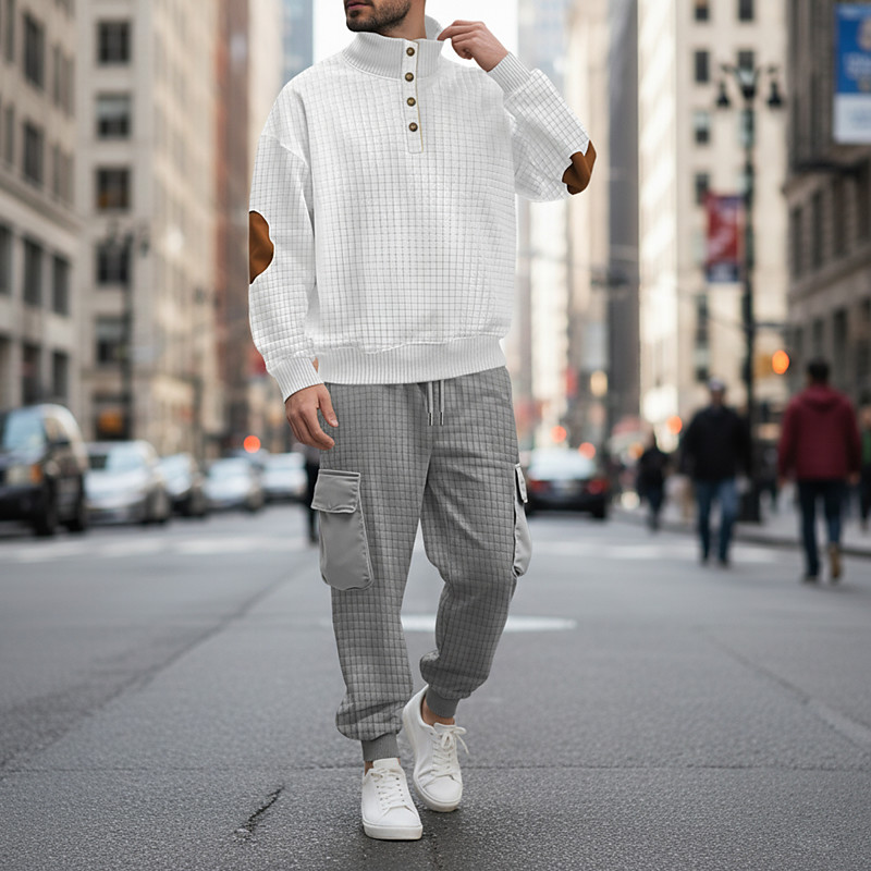 Men's Sweatshirt Tracksuit Waffle Hoodies Outfit Set Stand Collar Outdoor Daily Sports Jacquard Drawstring Button Up Color Block Wine Red White Light Green Activewear Fashion Streetwear Spring