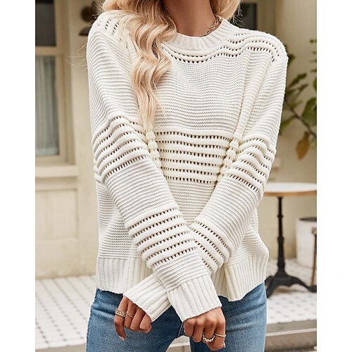 Per donna Felpa Giornaliero Informale Tinta unica Girocollo Traforato Girocollo Manica lunga Top regolari Maglia Formale Ufficio Fine settimana Bianco Rosa Autunno Inverno