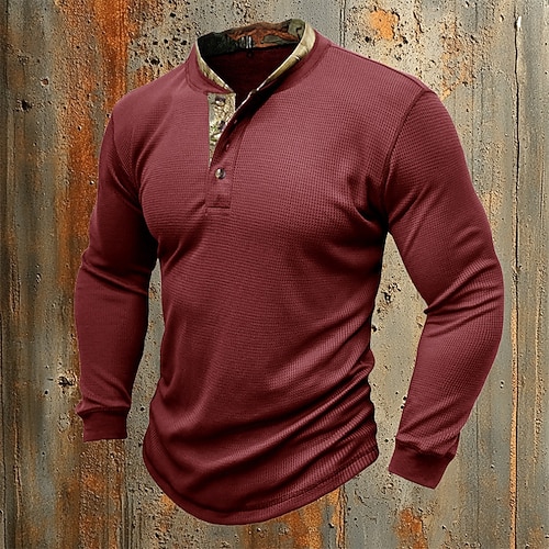 Per uomo Maglietta Waffle Maglietta Maglia Henley Manica Lunga Tinta unica Maglieria Quotidiano Bottoni Henley All'aperto Casual Casuale Primavera Autunno Primavera Autunno blu navy Nero Bianco