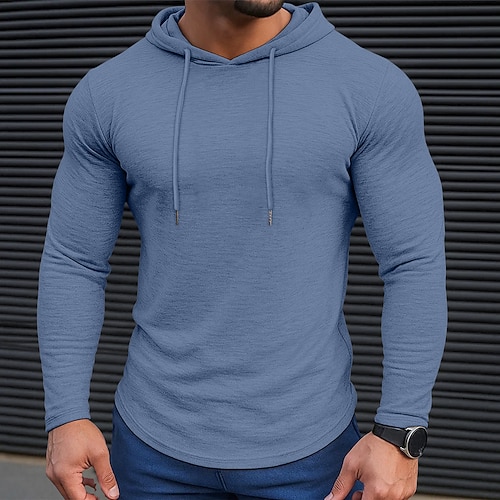 Per uomo Maglietta Manica Lunga Con Cappuccio Primavera Autunno Tutte le stagioni Tinta unica Tradizionale / Vintage Casual Con cappuccio All'aperto Casuale Abbigliamento sportivo Blu chiaro Bianco