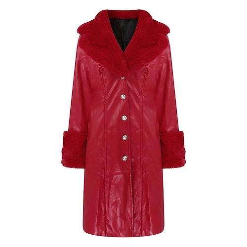 Per donna Giacca in Ecopelle Cappotto Invernale Cappotto Caldo Confortevole Tasca Bottoni Collo in Pelliccia Moda Casual Tinta unica Vacanza Streetwear Casuale Abbigliamento quotidiano Lungo Collo