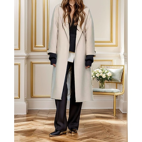 Per donna Cappotto Invernale Cappotto Caldo Confortevole Tasca Con cintura Casual Tinta unica Vacanza Streetwear Casuale Abbigliamento quotidiano Lungo Collo ripiegato Vestibilità regolare Manica
