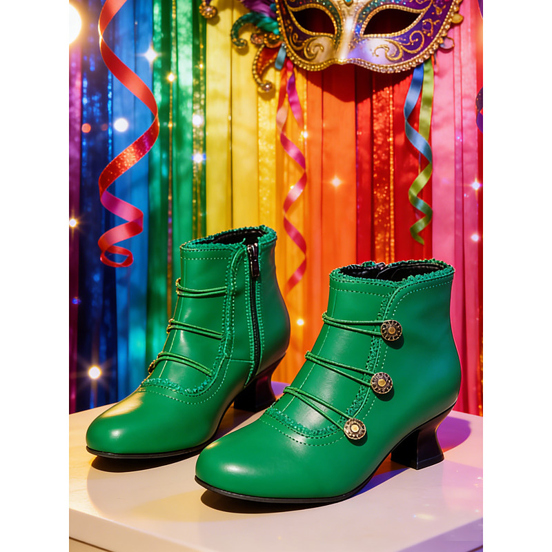 Women's 1950s Vintage White Faux Leather Ankle Boots - Chunky Block Heel with Decorative Buttons and Scalloped Detail, Perfect for Daily, Parties and Everyday Wear