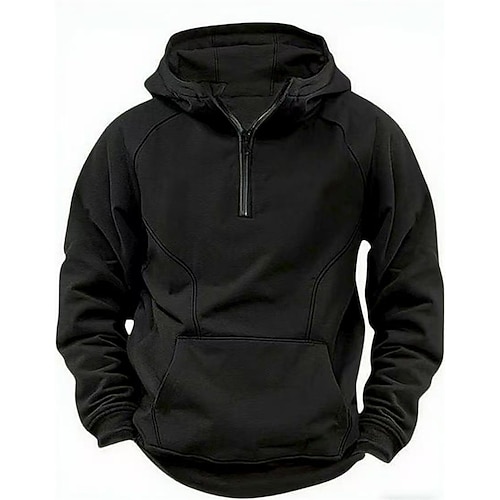 Per uomo Felpa con cappuccio Felpa con cappuccio e zip corta Nero Vino Verde militare Blu marino Cachi Con Cappuccio Semplice Tasca Mezza cerniera Sport Outdoor Quotidiano Ferie Poliestere