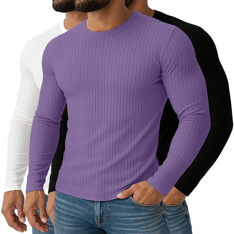 Men's T Shirt Muscle Shirt Ribbed Knit tee Tee Top Long Sleeve Crew Neck Spring Fall All Seasons Plain Textured Pit Strip Fashion Designer Basic 2 Piece Multi-pack Knitting Vacation Street Casual