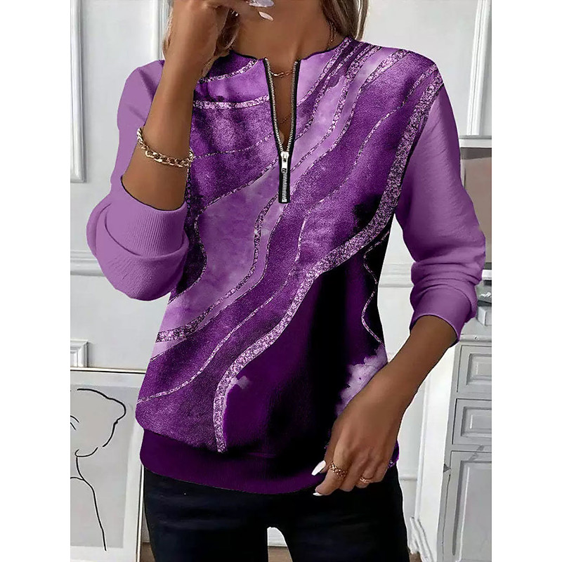 Women's Pullover Sweatshirt Zip Up Sweatshirts Graphic Abstract Fashion Casual Long Sleeve Crew Neck Regular Tops Street Dailywear Zipper Print Red Blue Purple Brown Green Fall Winter