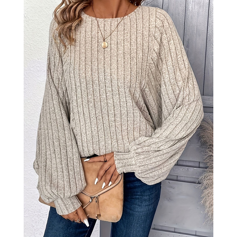 Women's T Shirt Tee Top Solid Color Fashion Stylish Classic Long Sleeve Lantern Sleeve Crew Neck Regular Tops Daily Weekend Black Pink Khaki Light Grey Rose Pink Spring Fall Winter