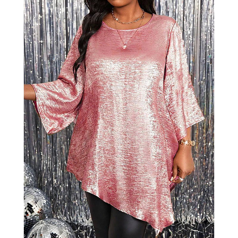 Women's Blouse Solid Color Vintage Stylish Casual Long Sleeve Crew Neck Regular Tops Daily Going out Weekend Patchwork Asymmetrical Pink Royal Blue Fuchsia Gold Light Blue Spring Fall