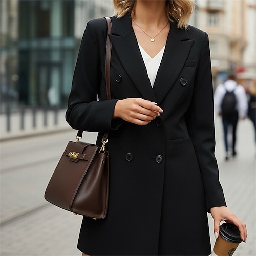 Damen Wintermantel Blazer Warm Bequem Tasche Knöpfe Elegant Mode Täglich Klassisch Einfarbig Formell Outdoor Urlaub Heim Regulär Gekerbtes Revers Normale Passform Langarm Oberbekleidung Schwarz Wei
