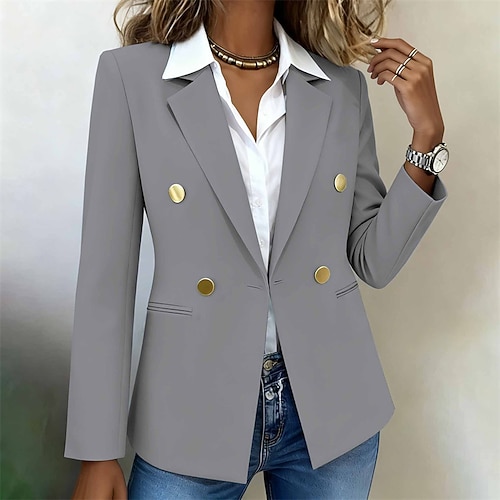 Damen Blazer Freizeitjacke Bequem Knöpfe Mode Lässig Einfarbig Straße Alltagskleidung Ausgehen Wochenende Regulär Umlegekragen Normale Passform Langarm Oberbekleidung Schwarz Herbst Winter
