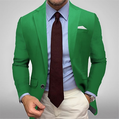 Herren Blazer Geschäft Cocktailparty Hochzeitsfeier Mode Lässig Frühling Herbst Polyester Einfach Tasche Knöpfe Bequem Einreihig Blazer Hellgrün Marineblau Braun Kaki