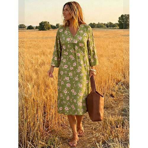 Per donna Abito Midi Abito a Tubino Abito a trapezio Casual Ferie Vestibilità comoda Floreale Grafico Manica Lunga Girocollo Bianco Giallo Marrone Verde Estate Primavera Autunno Inverno