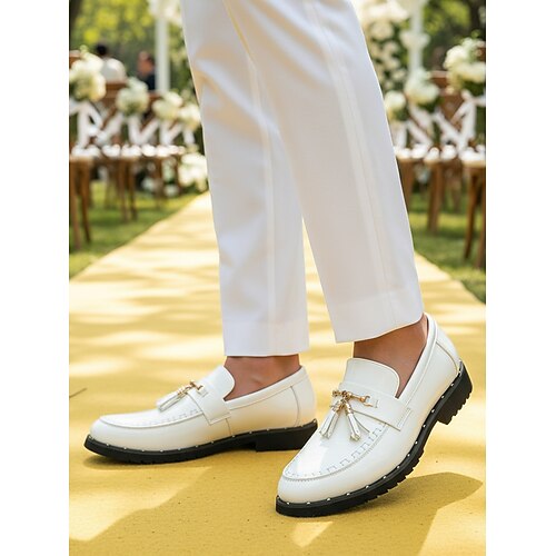Mocassini da uomo dorati senza lacci – eleganti scarpe da matrimonio, in pelle lucida, vestibilità comoda, ideali per eventi in giardino e feste.