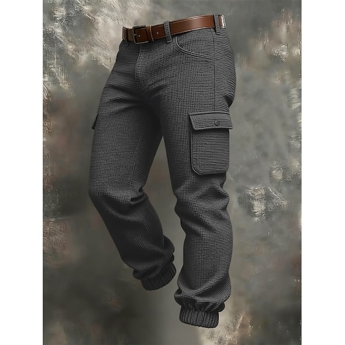 Herren Cargo-Hosen Hose Waffelhose Knöpfe Mehrere Taschen Einfach tragbar Täglich Outdoor Campen und Wandern Mode Klassisch Schwarz Himmelblau