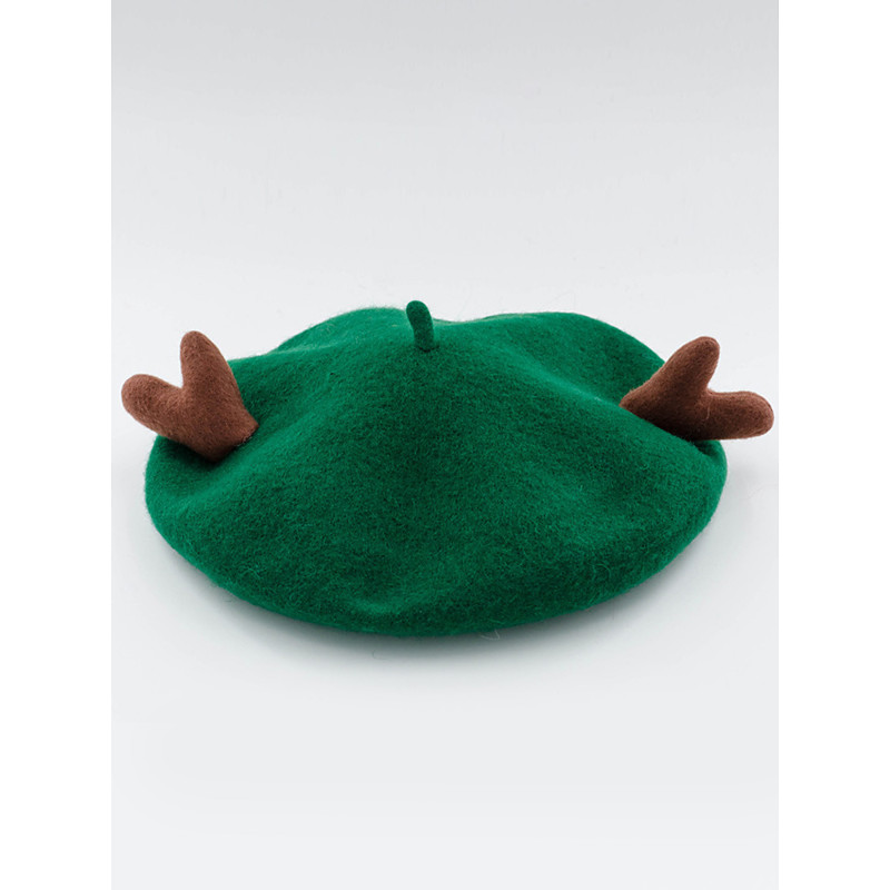 Women's Mardi Gras Cute Animal Beret – Wool Felt Cap with Ears (Fox, Frog, Deer) in Multiple Colors for Carnival, Cosplay and Costume Parties