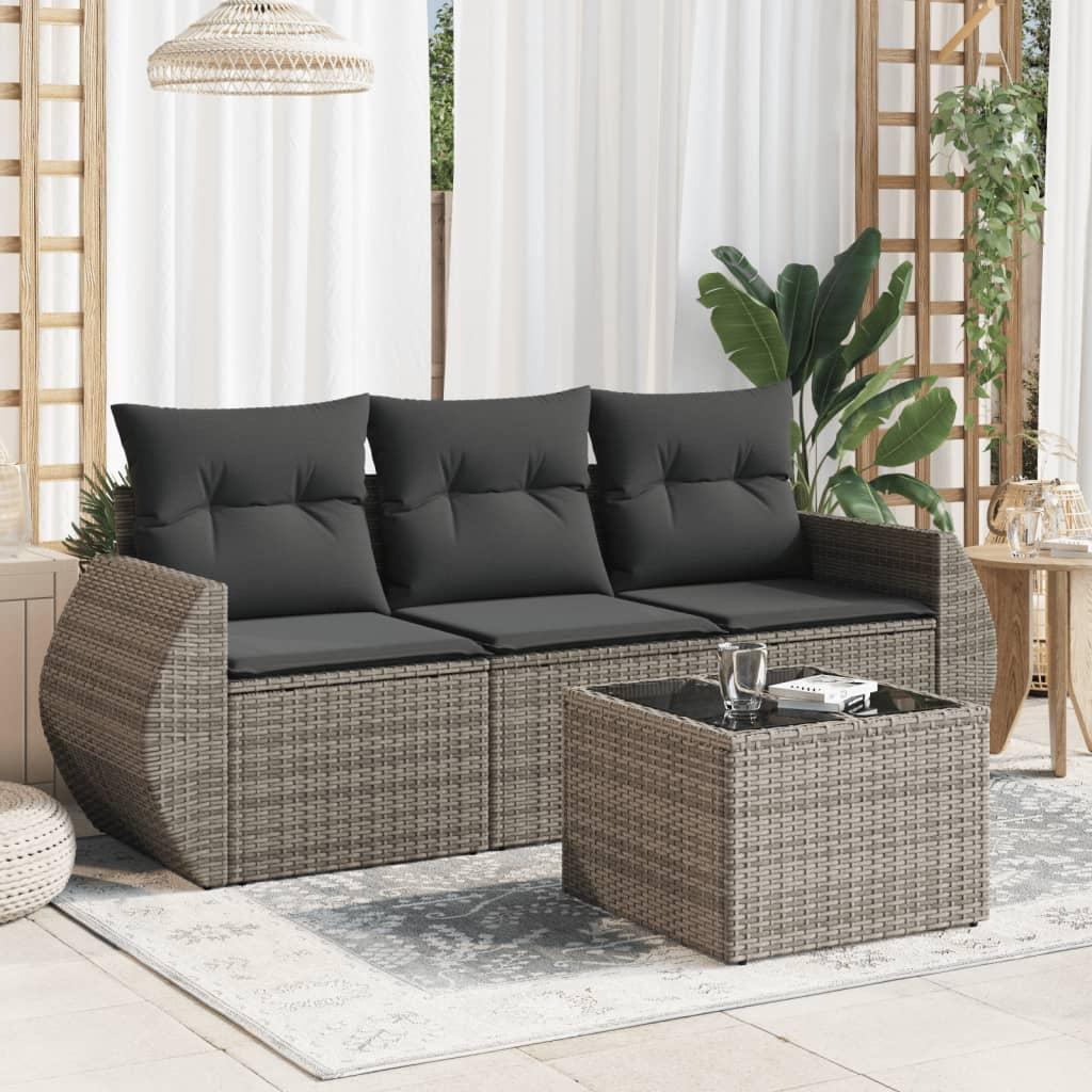 Sofasæt til haven 4 dele med hynder polyrattan grå