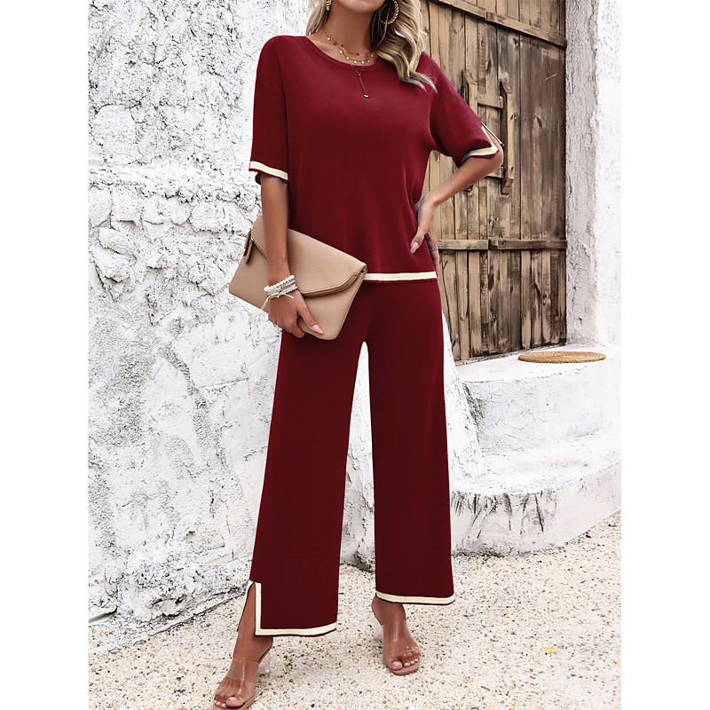 Women's Sets Pure Color Casual Comfort Daily Viscose Breathable Crew Neck Short Sleeve T shirt Tee Pant Summer Spring Home Outfits