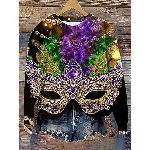 Felpa Pullover da Donna Carnival Maglietta Grafica Casual Maniche Lunghe Collo Giro Regular Tops Moda Quotidiana Nera Viola Verde Autunno Inverno
