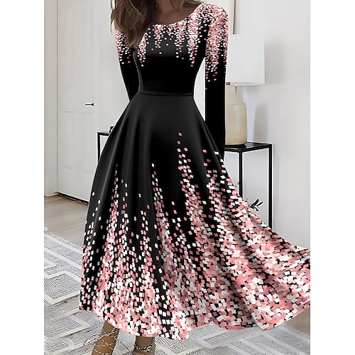 Per donna Abito Midi Abito a trapezio Abito aderente e svasato Vacanza Casual Boho Feste Quotidiano Uscire Vestibilità regolare Ombre Grafico Manica Lunga Girocollo Blu Rosa Viola Verde Estate