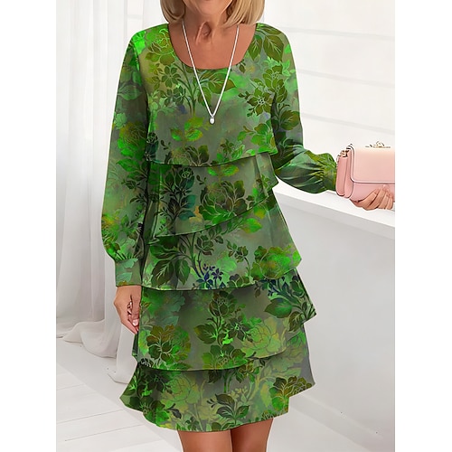 Abito Mini Donna Manica Lunga Girocollo Abito Casuale Abito T-Shirt Abito Tee Abito A-Line Abito Casuale Fit Regolare Floreale Grafico Blu Viola Verde Khaki Autunno Inverno