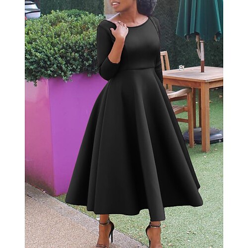 Per donna Abito Midi Vestito da Festa Abito da Cocktail Vestito a ruota Moderno All'aperto Feste Compleanno Vestibilità regolare Semplice Manica Lunga Girocollo Nero Bianco Rosso Verde Estate