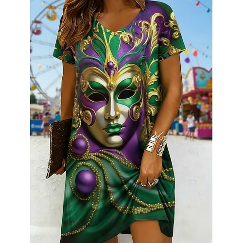 Per donna Mini Abito Vestito Casual Vestito T-Shirt Moda Moderno Quotidiano All'aperto Vacanza Vestibilità regolare Grafico Manica Corta Scollo a V Giallo Borgogna Verde scuro Viola Estate Primavera
