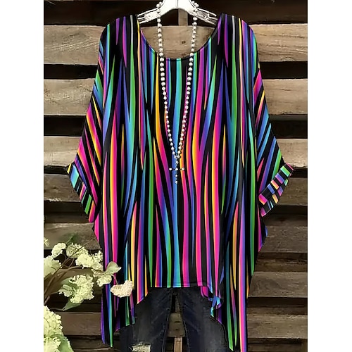 Per donna Blusa Grafico Geometrico Vintage Quotidiano Casual Mezza Manica Manica a pipistrello Girocollo Top lunghi Quotidiano Ferie Abbigliamento mare Asimmetrico Nero Giallo Blu Arcobaleno Estate