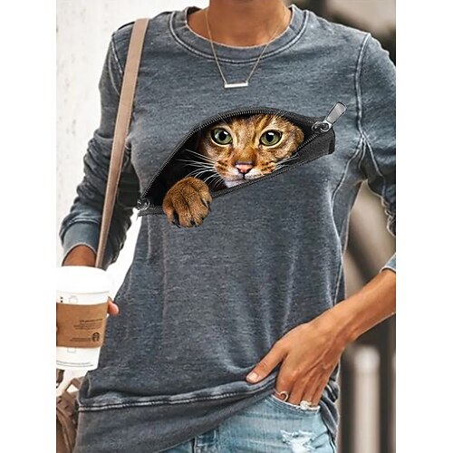 Per donna Felpa Pullover Felpe con cappuccio Grafico Animale Gatto Moda Casual Manica Lunga Girocollo Top Regolari Streetwear Abbigliamento Quotidiano Stampato Blu Nero Viola Verde Grigio Primavera