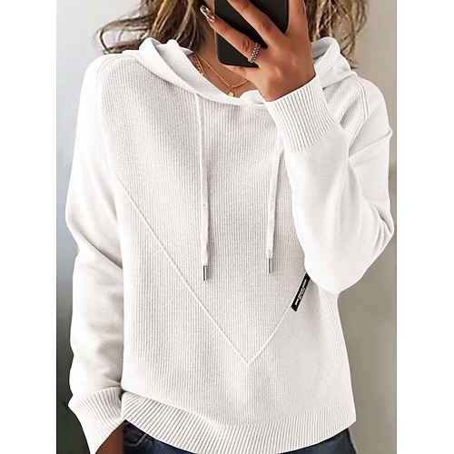 Per donna Felpa Casual Morbido Colore Puro A Coste Con Cappuccio Lavorato a maglia Manica Lunga Top Regolari Maglia Quotidiano All'aperto Weekend Blu Nero Autunno Inverno