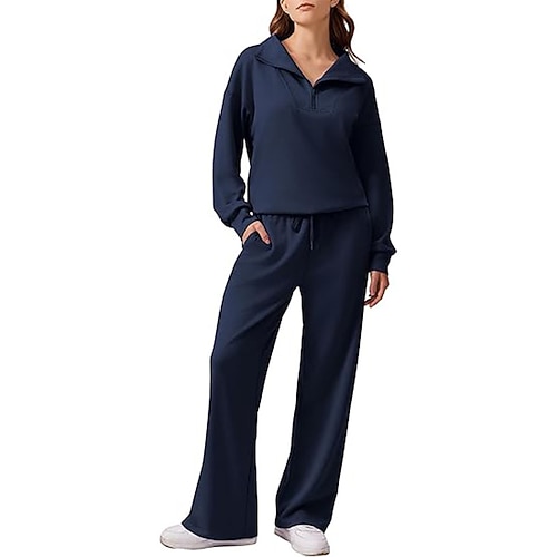Per donna Moda Quotidiano Set di Pantaloni Manica Lunga Scollo a V Tinta unica Coulisse Abbigliamento quotidiano Grigio scuro Nero Vino Autunno Inverno Vestibilità regolare