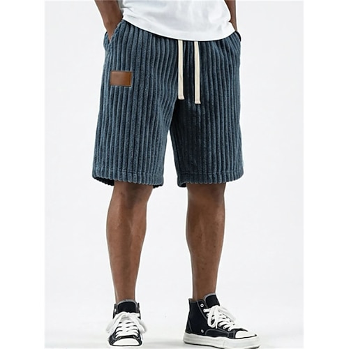 Per uomo Shorts Pantaloncini casual Pantaloncini di velluto a coste Tasca Elastico in vita Semplice Testurizzato Comodità Traspirante Sopra il ginocchio Casuale All'aperto Spiaggia Vacanza Moda Nero