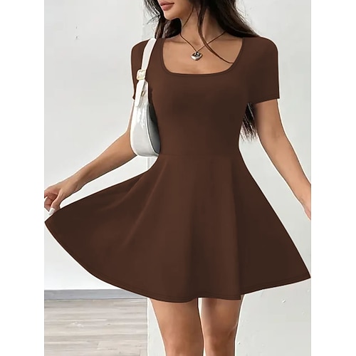 Per donna Set da due pezzi Set di gonne Manica Corta Collo quadrato Semplice Moda Streetwear Casuale Quotidiano All'aperto Nero Marrone Grigio Estate Taglia piccola